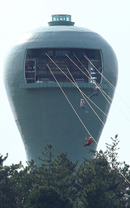 | 가우도 정상에 있는 청자타워. 이곳에서 짚트랙을 타고 육지로 건너간다. 물론 출렁다리를 이용해 올 수도 있다. |