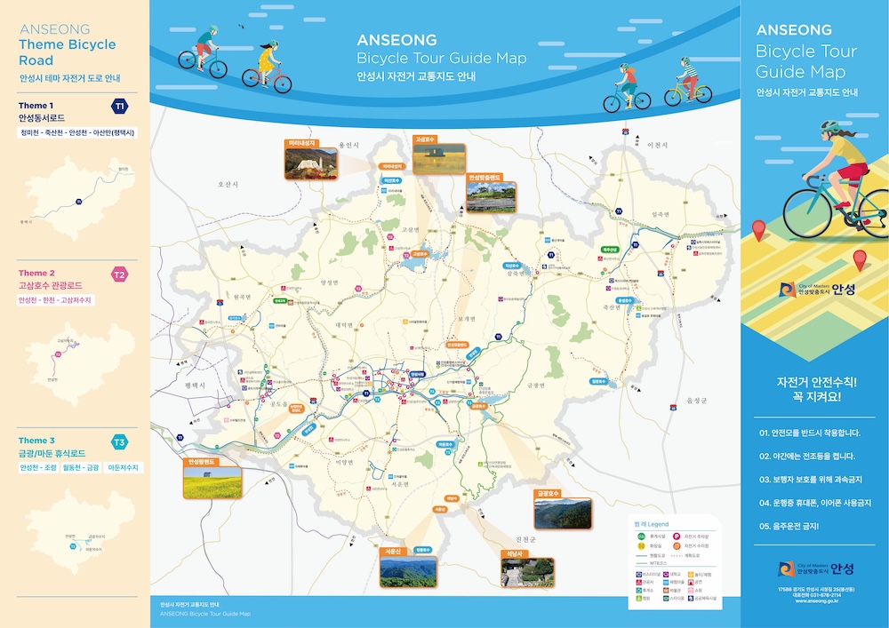 이번 자전거 지도에는 자전거 상식 및 안전 수칙, 안성시 자전거 보험 등 시민들이 자전거를 보다 안전하고 효율적으로 이용하는 데 도움이 되는 정보가 등록되어 있다.