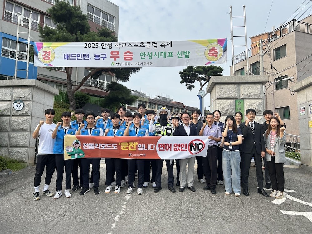 안성시는 9월 9일(화) 안성고등학교 정문에서 미성년자의 무면허 전동킥보드 이용을 예방하기 위한 「개인형 이동장치 안전 홍보 활동」을 안성경찰서, 안성교육지원청 등 관계기관과 합동으로 진행했다.