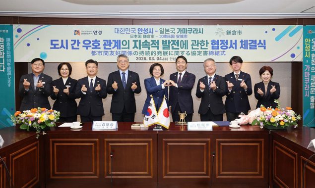 안성시는 2026년 3월 4일(수) 오전 11시 안성시청 본관 2층 상황실에서 일본 가나가와현 가마쿠라시(시장 마쓰오 다카시)와 「도시 간 우호 관계의 지속적 발전에 대한 협정」을 체결하고 양 도시 간 문화・예술 및 청소년 분야 교류를 본격 추진하기로 했다. 이번 협정은 상호 신뢰를 바탕으로 지속가능한 교류 체계를 구축하고, 미래 세대를 중심으로 한 실질 협력 사업을 단계적으로 확대하기 위해 마련됐다. 안성시와 가마쿠라시는 안성시의 지역 문화자산과 시민 참여 중심의 교류경험과 가마쿠라시의 역사・문화도시로써 축적된 국제교류 역량을 토대로 공동 협력 과제를 발굴・추진하고, 지속가능한 교류 기반을 강화해 나갈 계획이다. 협정 체결식에서는 김보라 안성시장을 비롯해 남상은 부시장, 이정우 안성교육지원청 교육장 등 시 관계자와 마쓰오 다카시 가마쿠라시장과 야마토 타카키 동아시아문화도시사업 담당 차장 등 대표단이 참석해 협정 체결과 함께 기념품을 교환하며 우호 증진 의지를 확인했다. 이에 안성시는 이번 협정 체결을 계기로 국제교류 네트워크를 한층 확대하고, 시민이 체감할 수 있는 글로벌 교류도시로 도약한다는 방침이다. 오경섭 기자