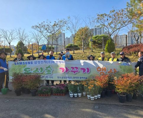 삼성전자, 평택시 통복천 ‘참여의숲’서 지속 가능 녹색도시 조성에 앞장서 평택시(시장 정장선)와 삼성전자는 지난 10일 통복천 ‘참여의숲’에서 ‘도시숲 조성 및