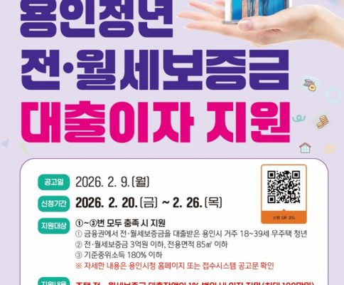 – 18~39세 무주택 청년 대출잔액의 1% 이내 최대 100만 원 – 용인특례시(시장 이상일)는 청년층의 주거비 부담을 덜고자 전월세 보증금 대출이자를 지원한다고 6일